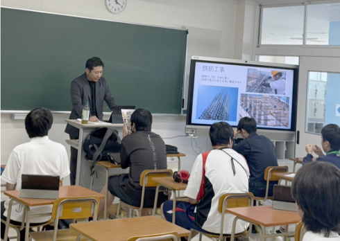 建設業界の大きな課題のひとつである、職人不足への取り組みの一環として高校生を対象に大工にとどまらず業界全体の仕事内容を紹介する機会を頂き実際に高校での説明会を実施しています。今後も業界全体の未来のため継続してまいります。